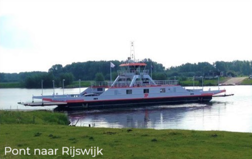 Op 5 minuten fietsen (of 12 min. lopen) vanaf bed & boot de Horizon kun je het Wijkse Veerpontje nemen naar het Gelderse dorpje Rijswijk. Als je aan de overkant bent, kan je bij Mini Resto 't Veer een lekker frietje eten of een drankje doen op het gezellige terras aan de Lek!